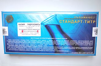 Стандарт-титр Калия гидроокись 0,1н (Гидроксид калия) КОН - используется для титриметрического анализа. В ходе такого исследования готовится стандартный раствор с известной концентрацией. Получают его путем растворения содержимого ампулы в мерной колбе с дистиллированной водой.